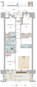 懸念を言うとすれば、特徴として売りにしているフルオープンサッシです。サッシを開放すると奥行2mのバルコニーとリビングが一体になって広がる大空間「オープンエアリビング」としてアピールしています。リビングが広く見える、気候のよい時期には、一体的な使い方ができるというメリットはありますが、断熱の点で少し気になるところです。