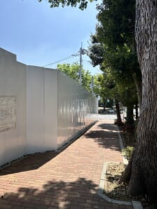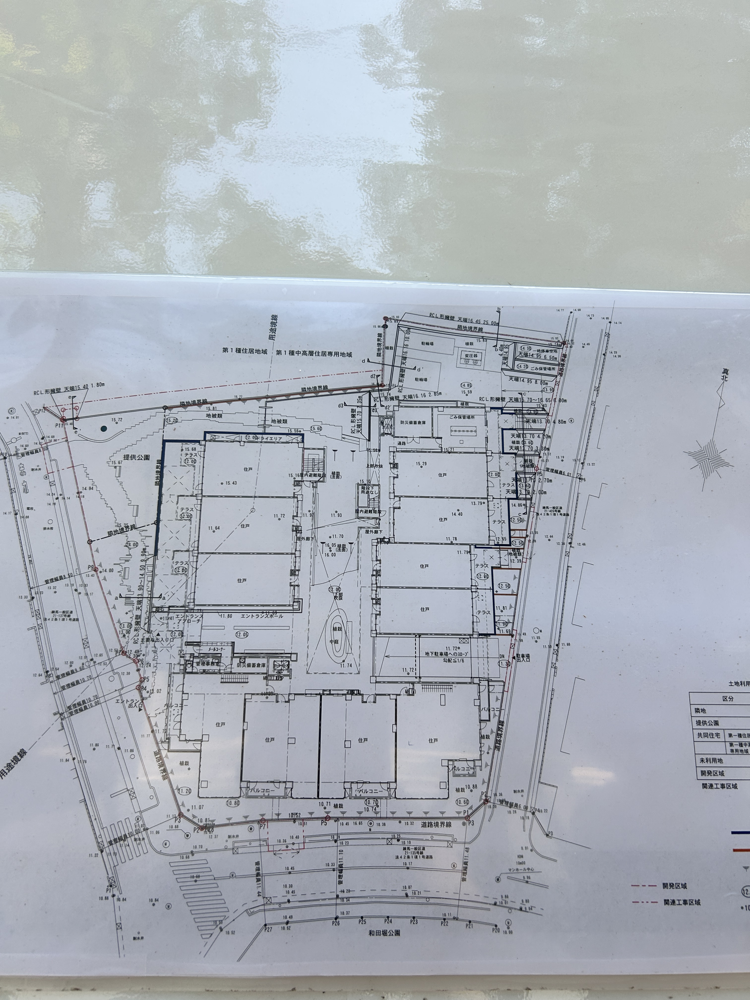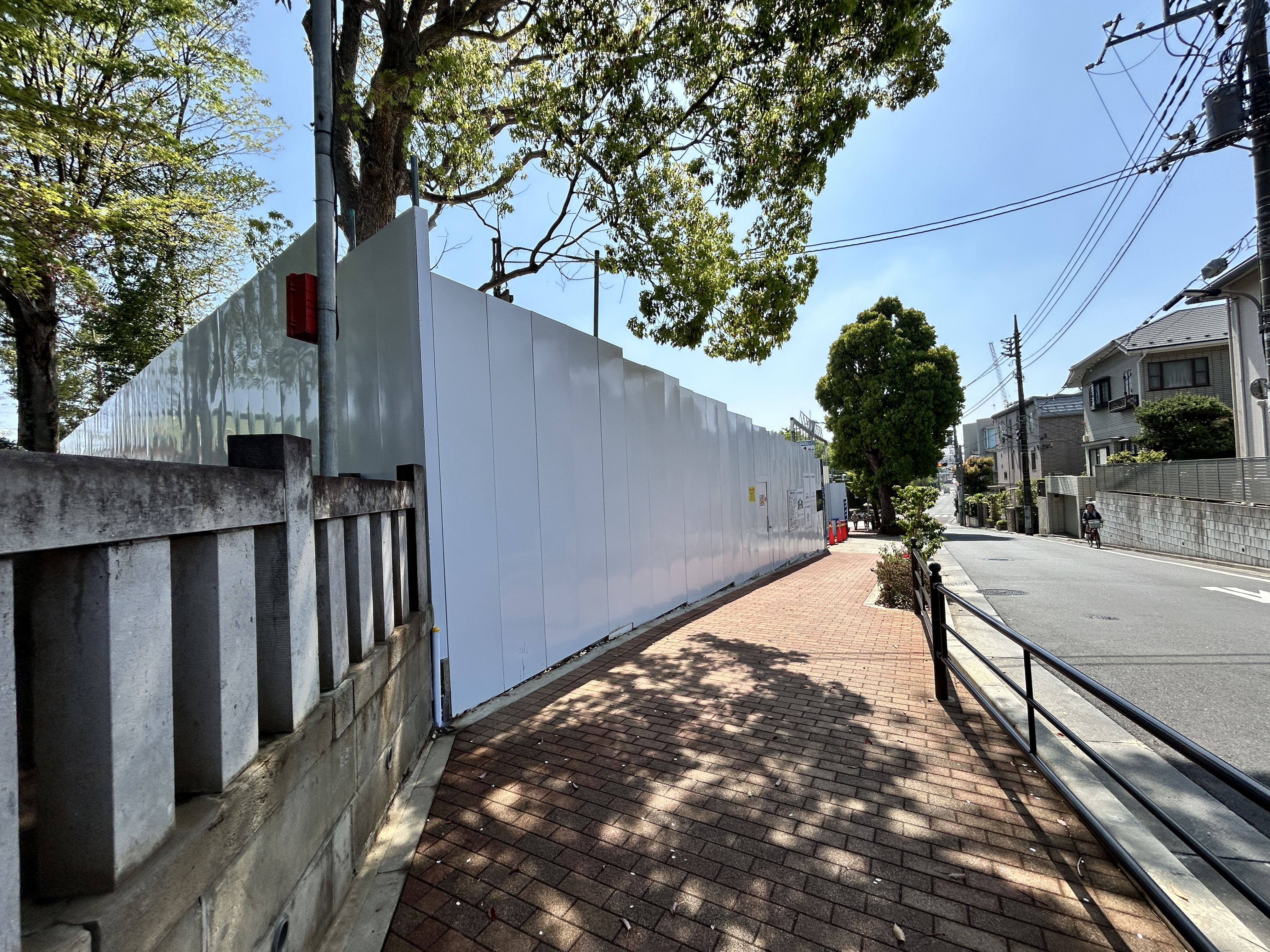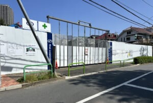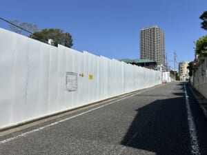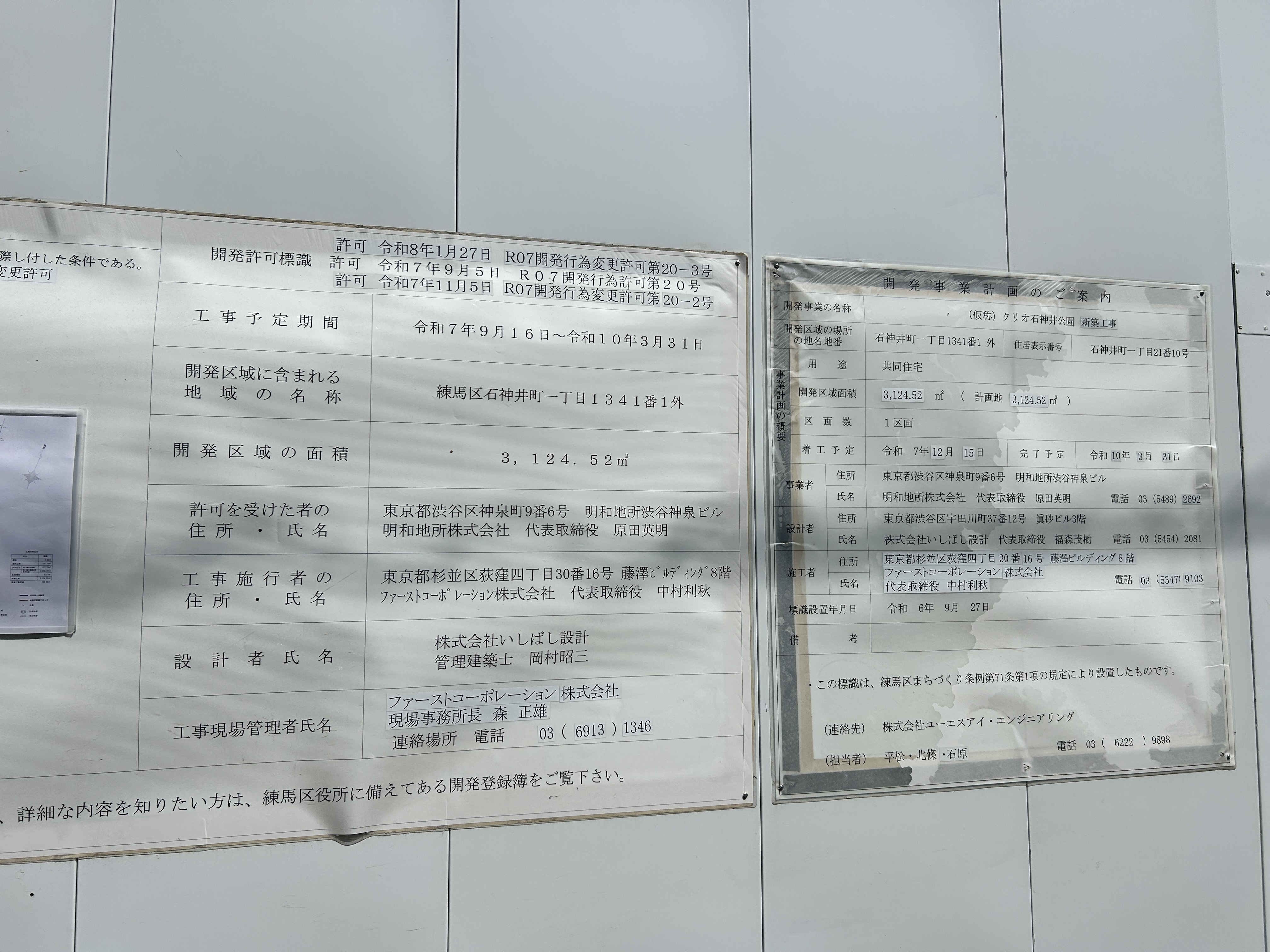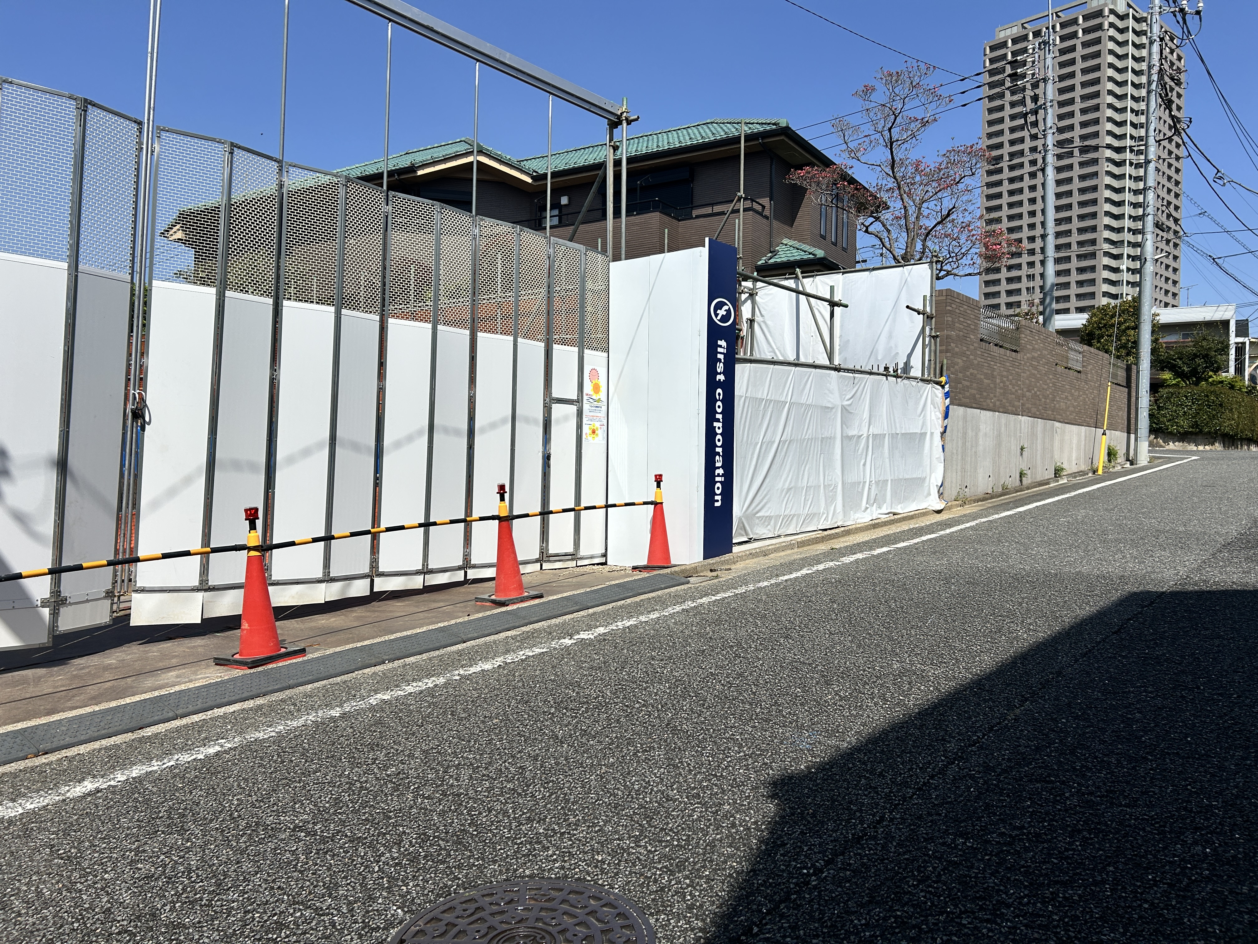 ▼万能板に開発事業計画の案内が掲示されています。HPには施工者が未定となっていましたが、現地では施工者は「ファーストコーポレーション」と確認ができました。