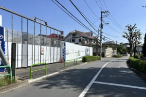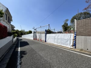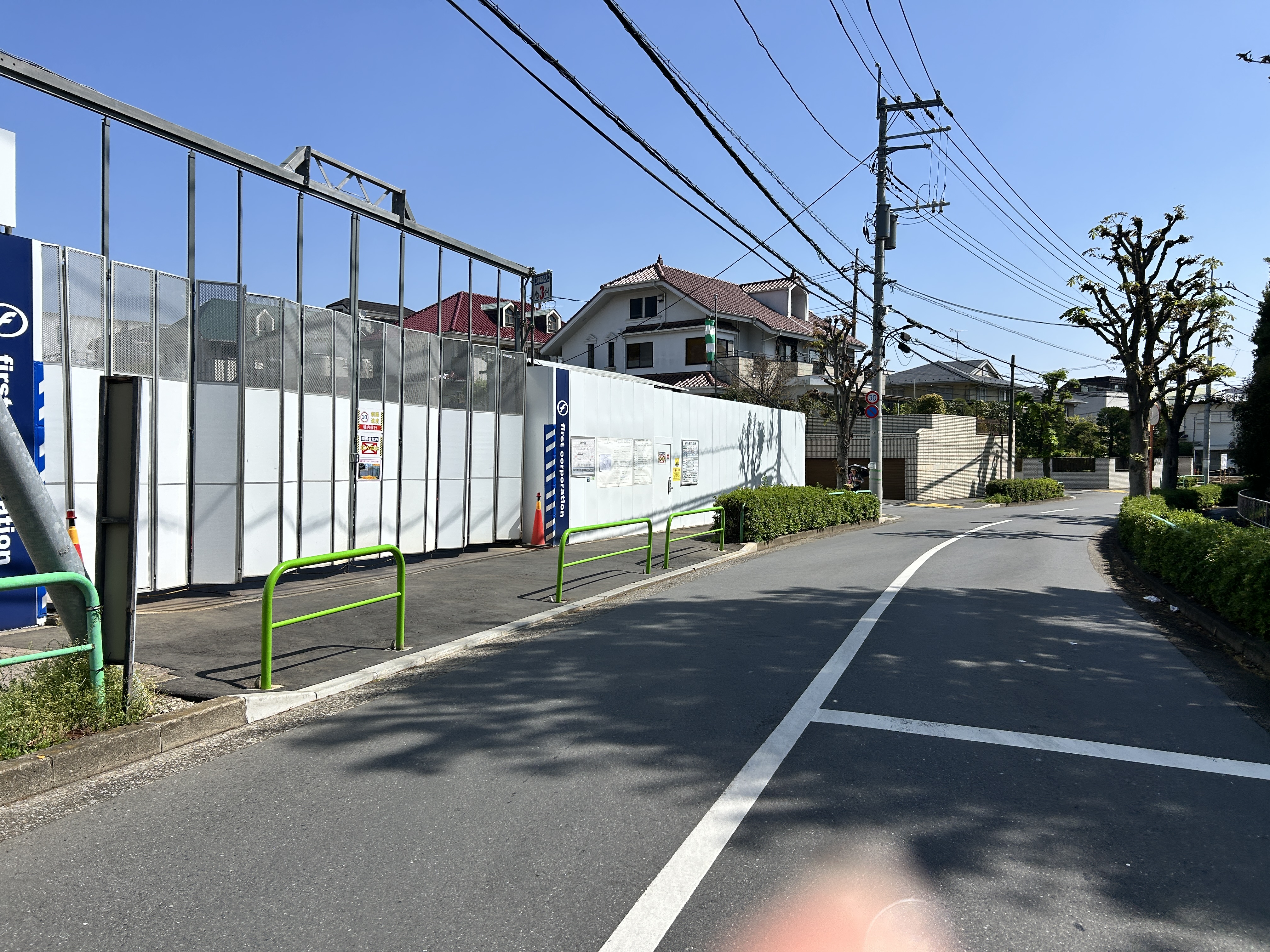 ▼南が低く、北に向かって高くなっています。東側の道路は、現状は戸建て住民の利用が中心のようで、車両や歩行者の通行はあまり見られませんでした。