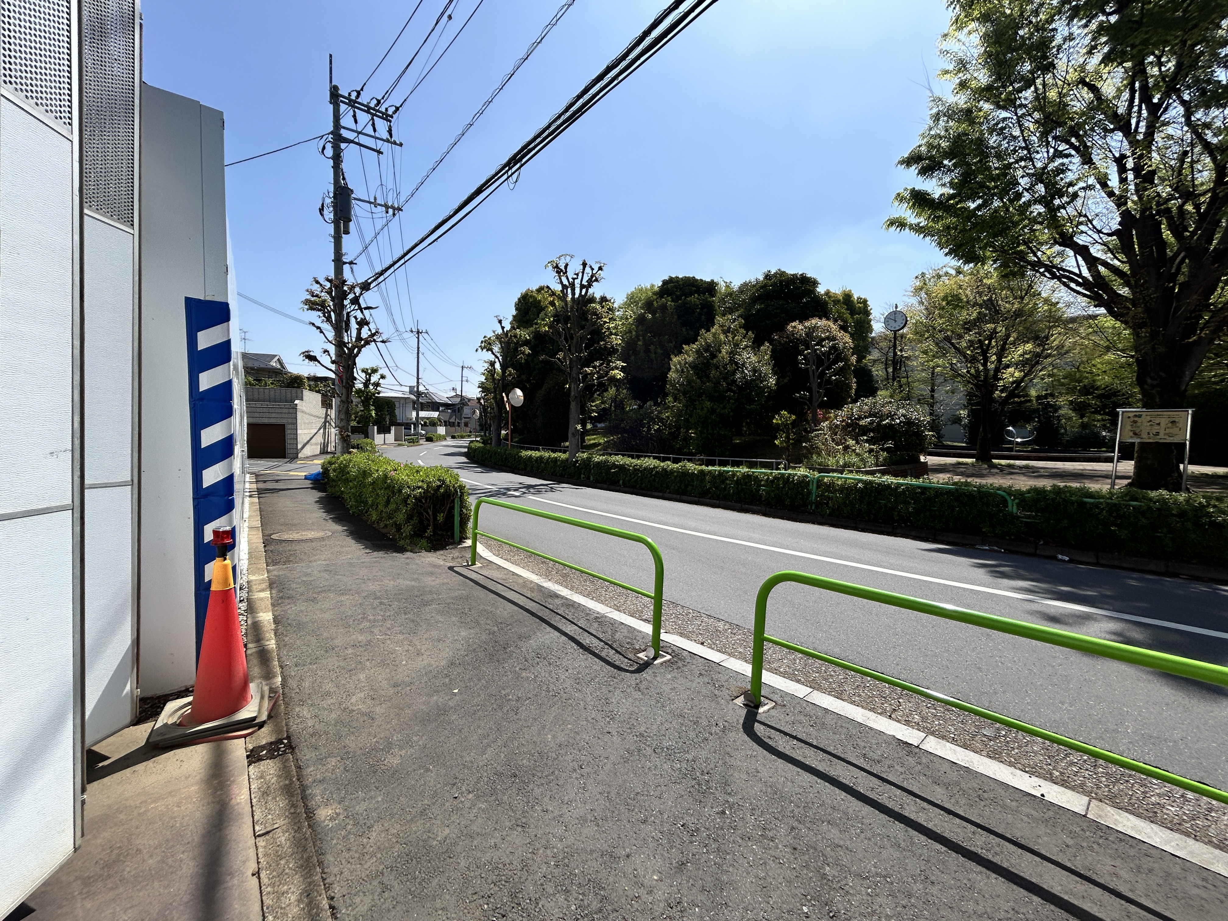 ▼南側の接道です。ポールが立ち、歩道と車道がしっかり分離されていますね。