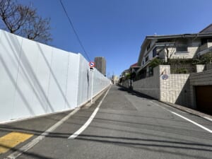 ▼それでは、東側の接道を北へ進んで行きます。右手には邸宅が並んでおり、高級住宅街の雰囲気が漂っています。