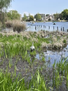 ▼アオサギがいました。生き物を身近に感じられるのはいいですね!