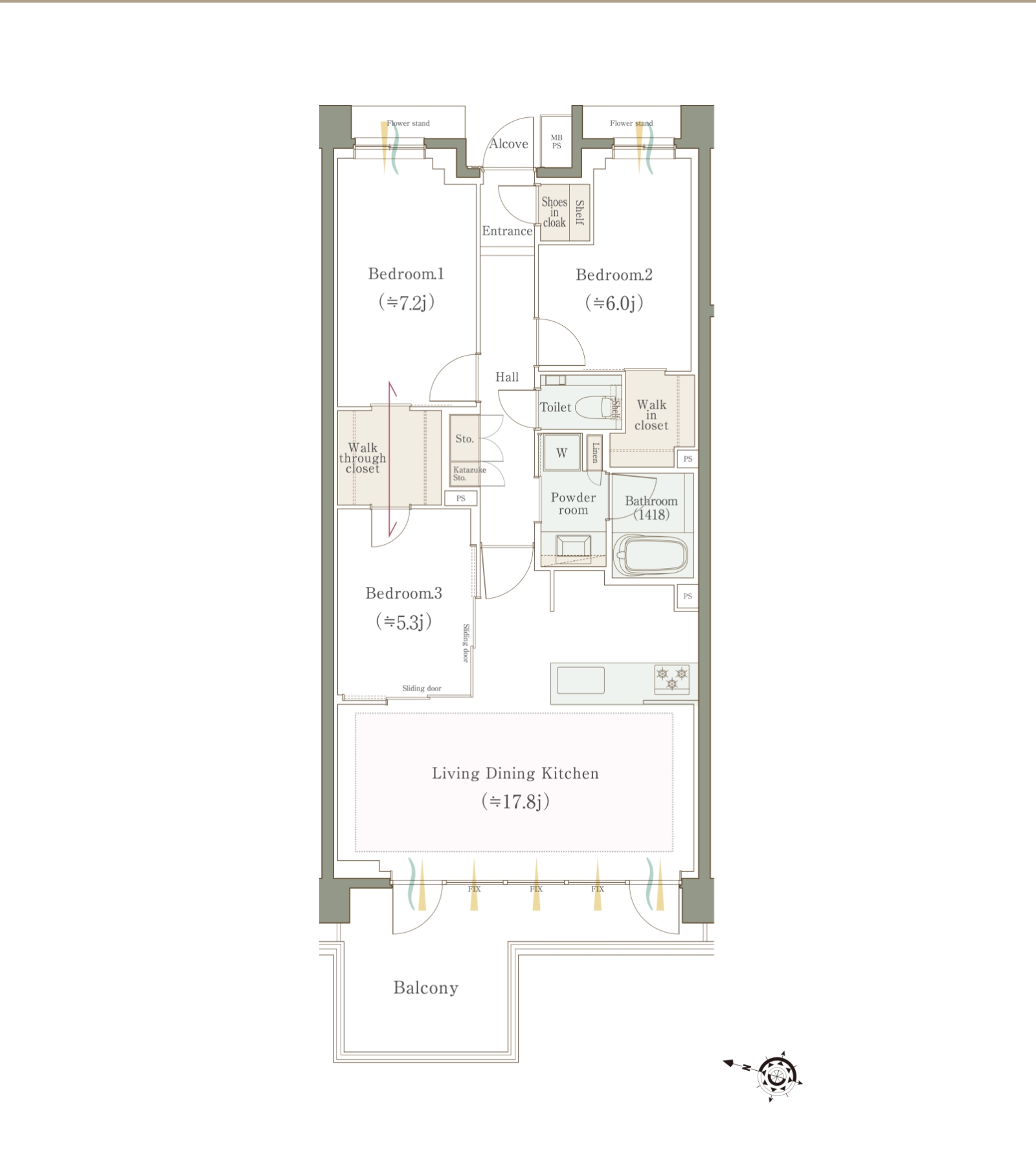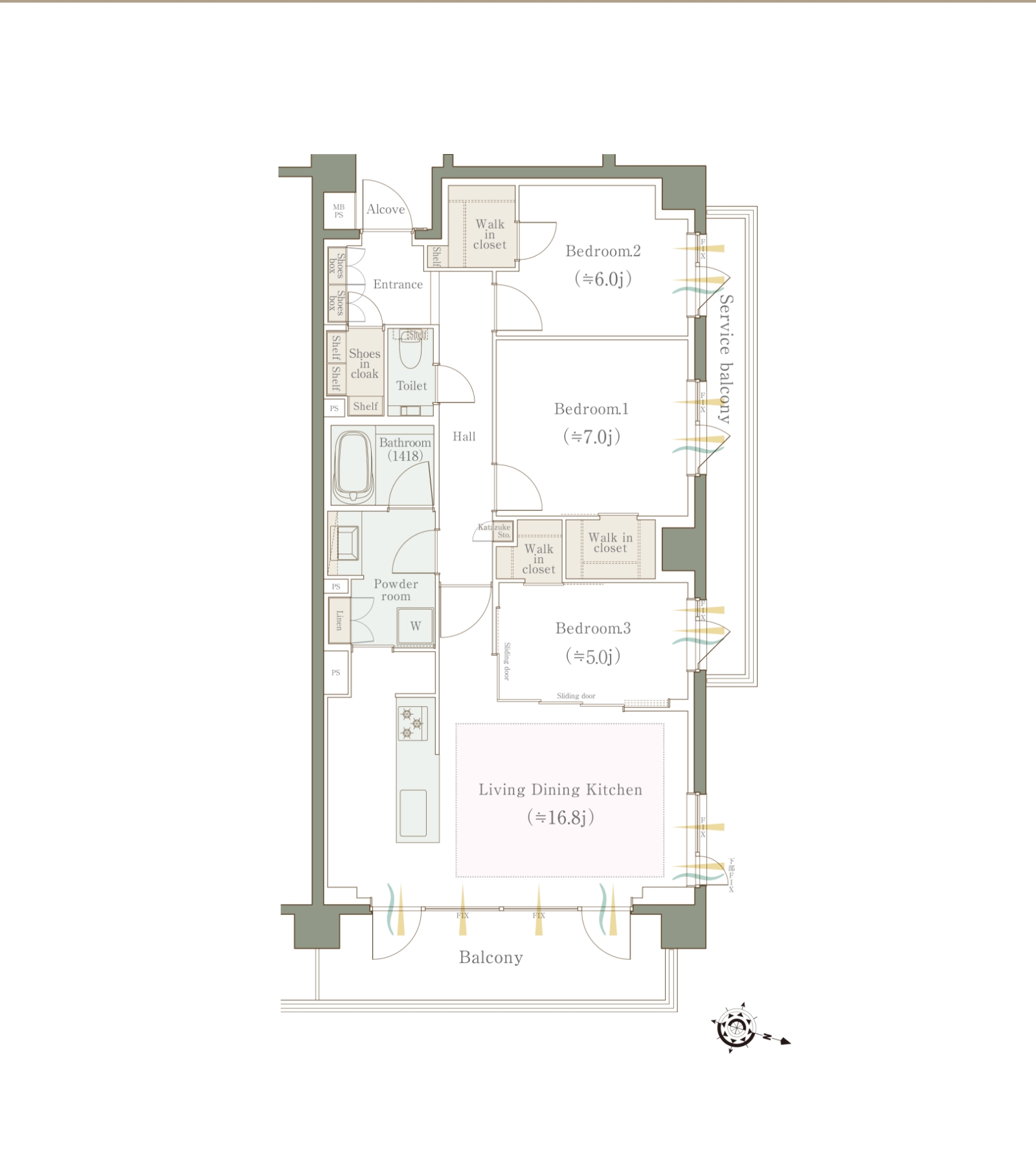 3LDK 166.41m² 南向き、ルーフテラス付き