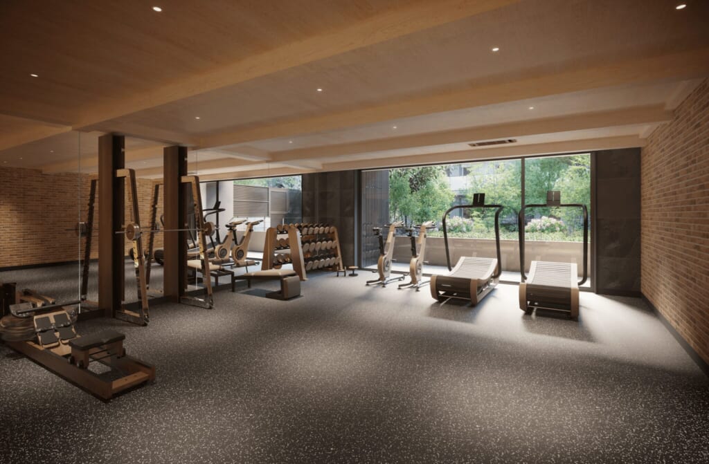 ディスポーザ・カップボードが全戸実装という点は要チェックです。最近の新築はコストカットで省かれるケースも増えてきている中、このあたりはきちんと押さえてくれています。木の温もりに包まれたフィットネスルームや電気暖炉のあるラウンジなど、共用部の質感も高水準です。低層マンションでフィットネスジムが設置されるのは、現在販売中のリビオシティ文京小石川などがありますが、少数派なのでとても注目の設備だと思います。(管理費は怖いですが)