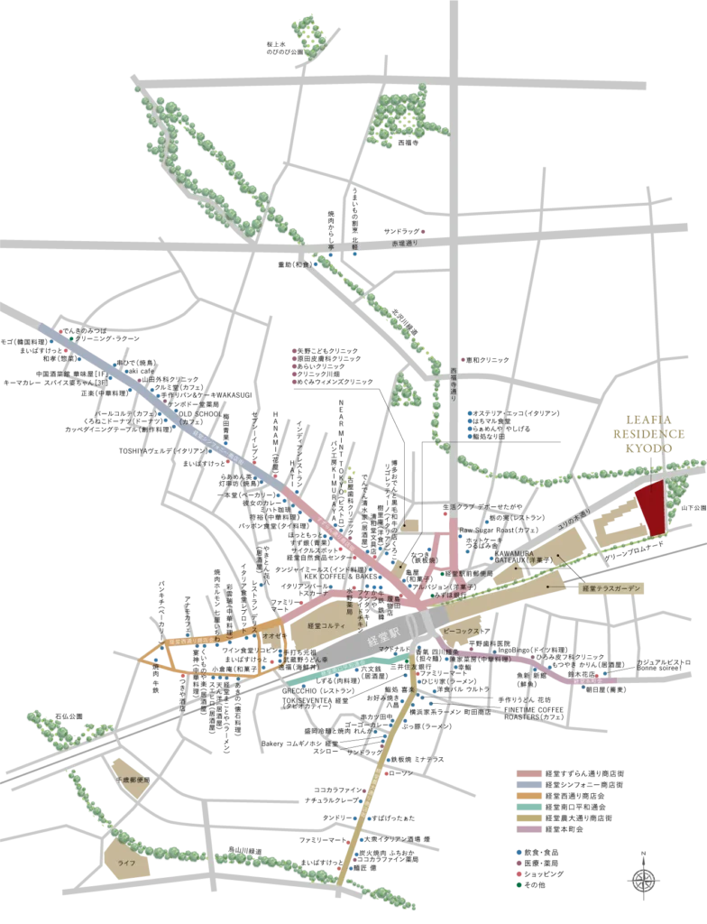 街の雰囲気としては2つの顔があります。駅北口のすずらん通り商店街は昔ながらの情緒が残る温もりある商店街。そして経堂テラスガーデンを中心とした再開発エリアは、グリーンプロムナードや洗練された商業施設が集積する”新しい経堂”。この2つが共存しているのが経堂の面白さであり、世田谷の悪い面である道の狭さを日常的には感じにくいのは魅力的ですね。