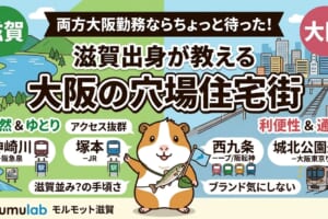 という思考回路で滋賀に詳しくなるパターンです。 滋賀は実際住みやすく、予算も組みやすい。夫婦で京都と大阪に勤務地があるならぜひおすすめしたいのですが、両方大阪勤務なら安さだけで滋賀に来るのはちょっと待った!
