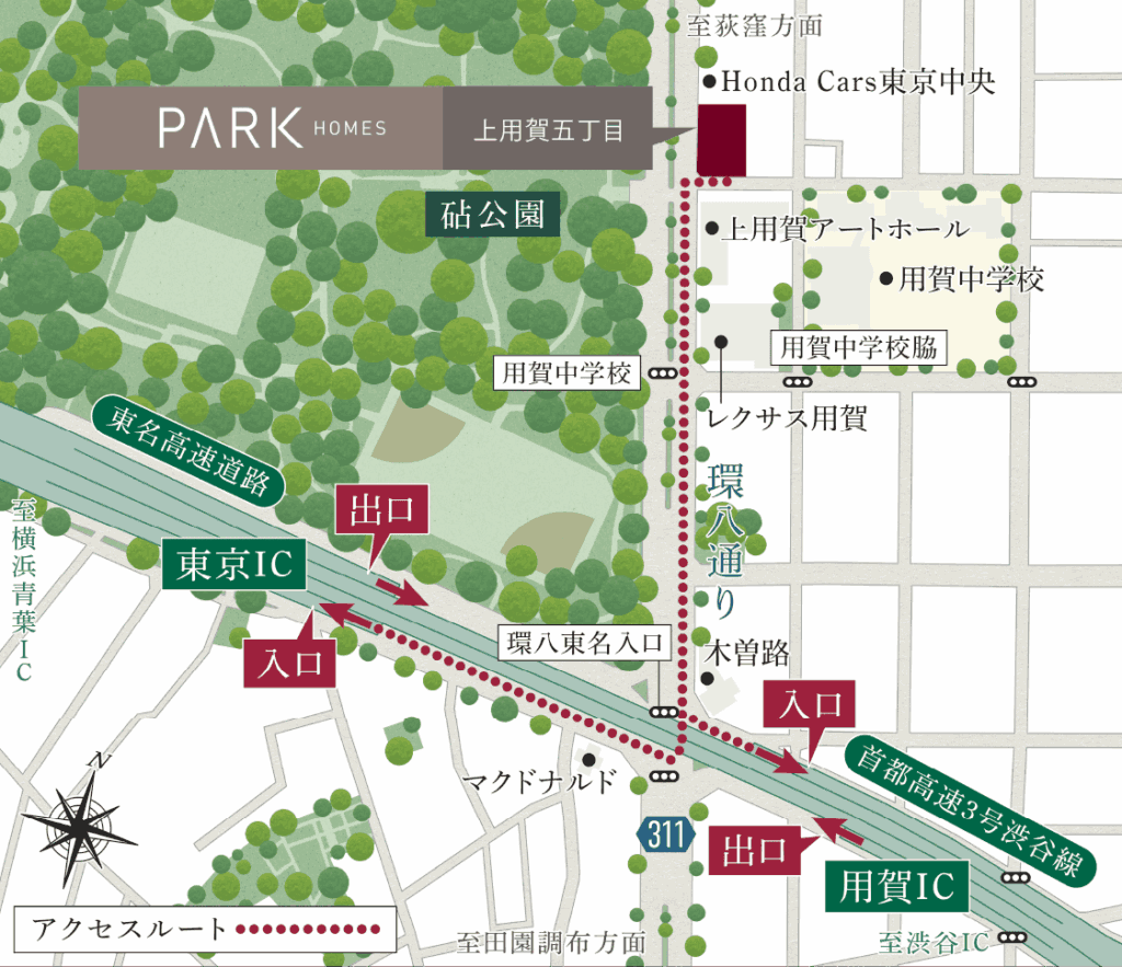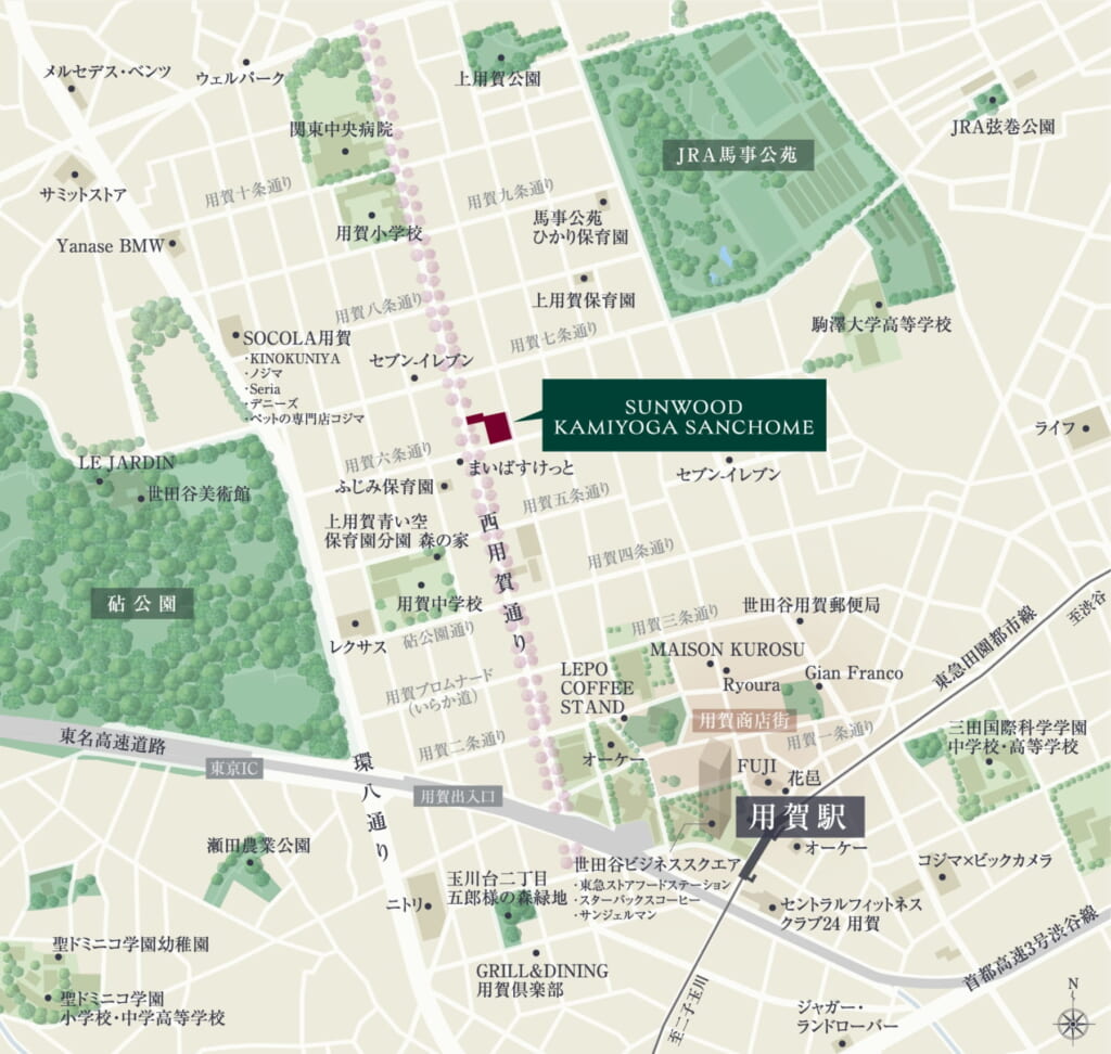 田園都市線の用賀駅やバス路線、用賀ICにも近く、静けさとアクセスの良さを兼ね備えている点も人気の理由です。