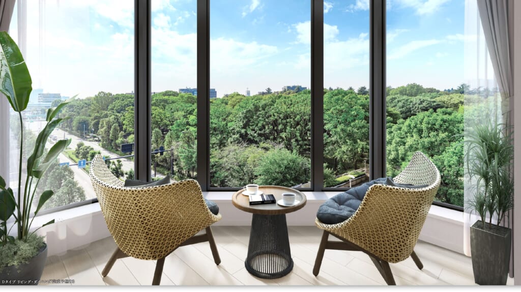 こちらの物件は東西に高い建物が建たない立地と用途規制により、東西の部屋からはそれぞれ素敵なViewが期待できます(竣工後販売なので、そこらへんもチェックできますね