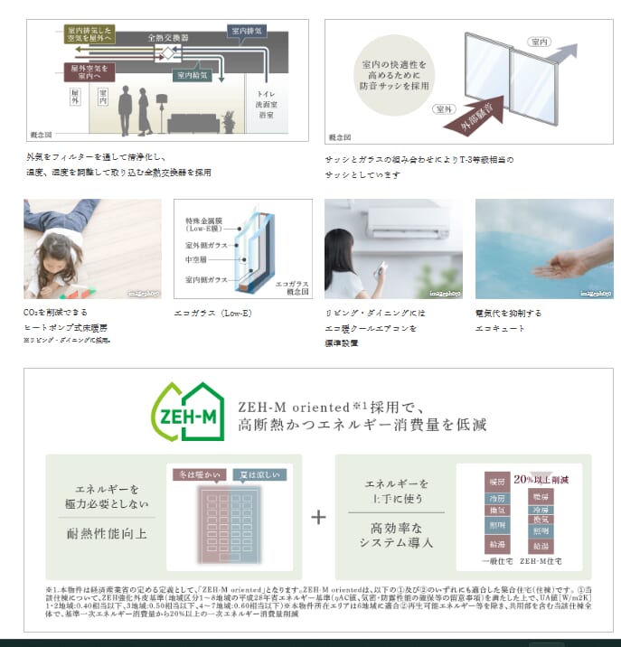 ランドスケープ、ゆたかな植栽、見せつける内廊下、平置き駐車場、Sマルチコア。