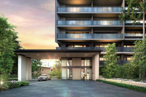 また敷地形状をうまく活用し、マンション自体を道路からセットバックさせた形にしたことで邸宅感を演出しています。