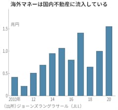 不動産サービス大手CBREによると、20年に海外から日本の不動産への投資額は前年比で24%増えた。世界全体で国境を越えた不動産への投資マネーの流れが同19%減となる中、日本への投資意欲は衰えていない。