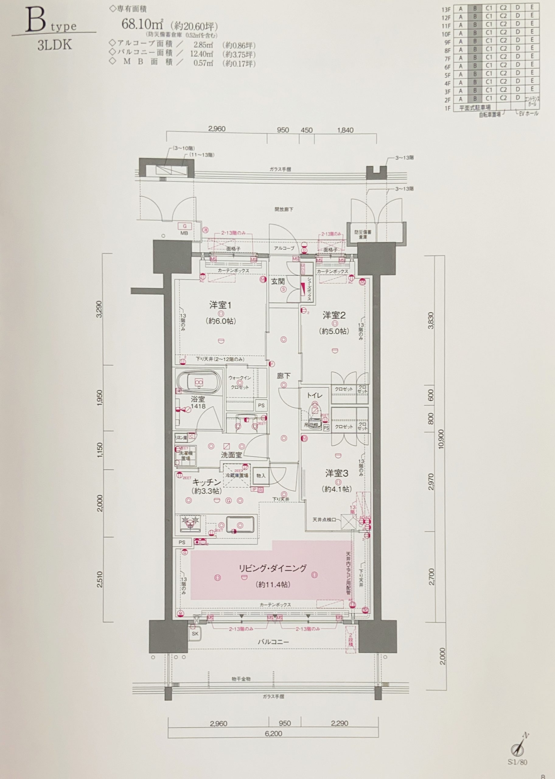 | 部屋番号 | タイプ | 価格(万円) | 面積(㎡) | 坪 | 坪単価(万円) |