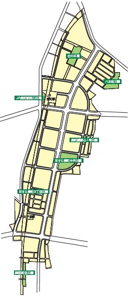 - 事業の結果、宅地の割合を減らし、道路が増えた事による移動性の向上に加えて、公園も増えました。しかしながら、宅地が、後に大規模マンション群に代っていくことを、誰が予想できたでしょうか。