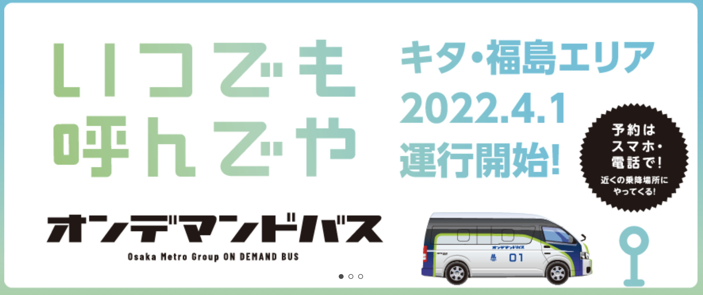 なお、2022年4月から大阪メトロとmobiが北区・福島区エリアでオンデマンドバスを開始しました。