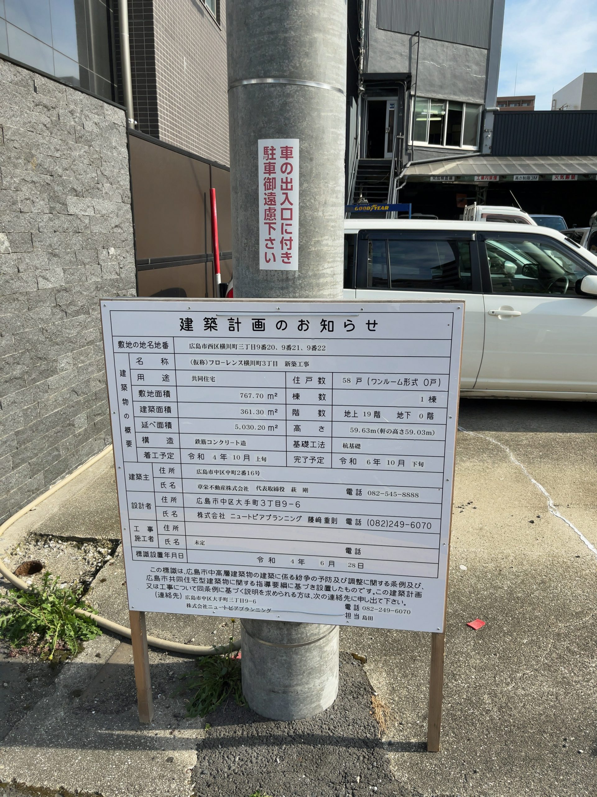 2件目は「フローレンス横川町3丁目(仮称)」です。広島ではおなじみ章栄不動産のフローレンスマンションです。