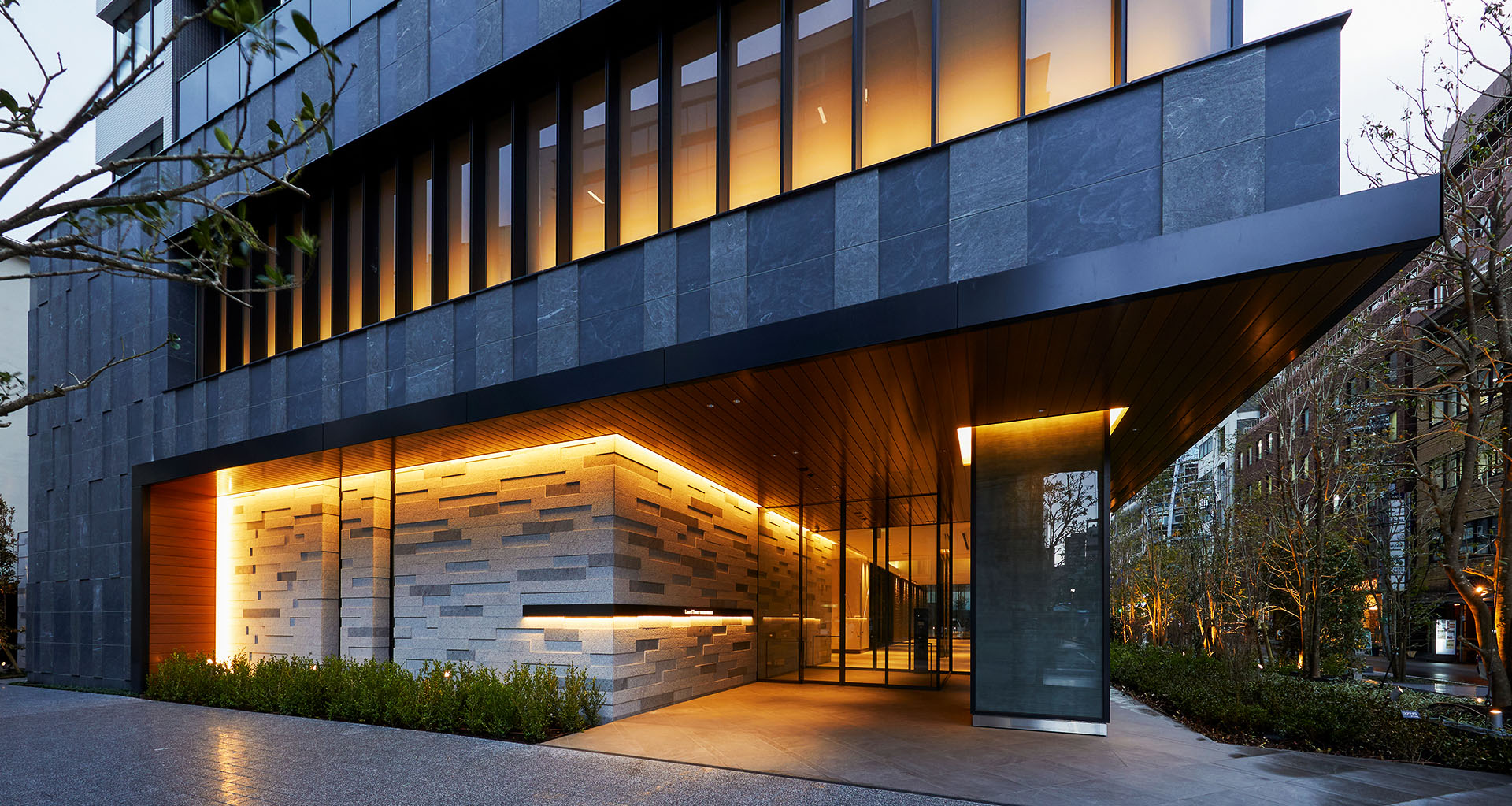 外からも1階エントランスホールの空間が見えるためライトアップがとても綺麗です。