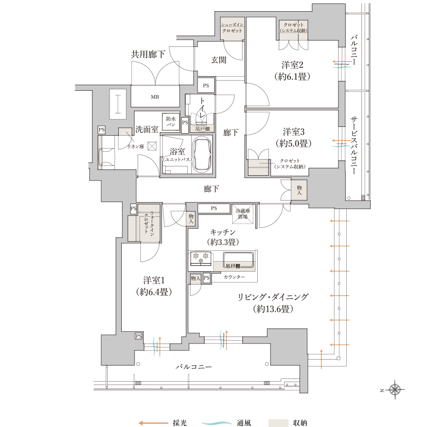 Nタイプ:3LDK 88.61㎡