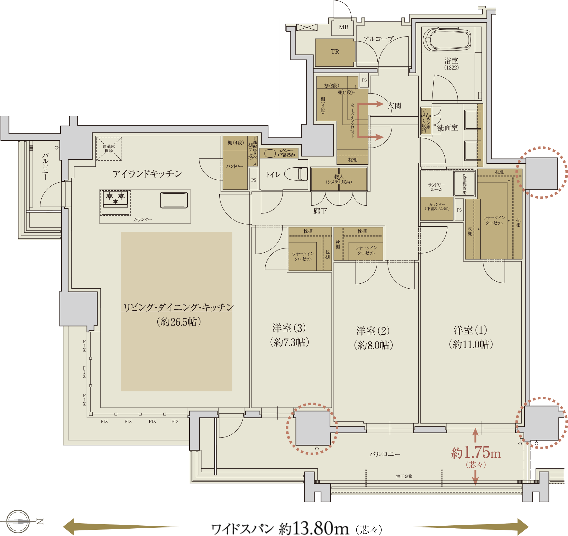 本物件の最大の特徴は全住戸117㎡〜280㎡と規格外の広さ。