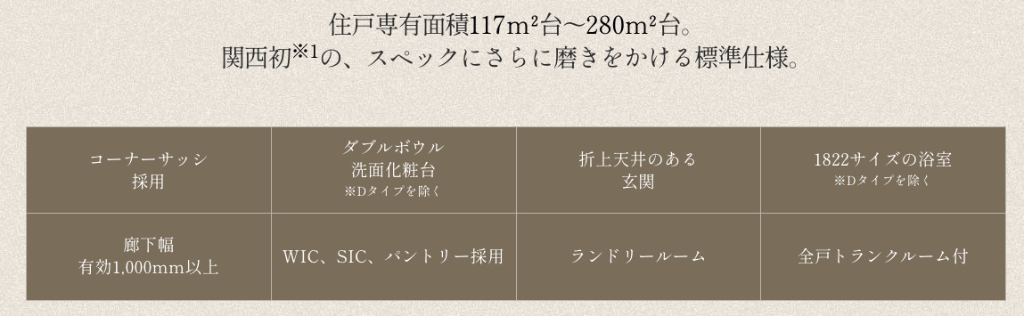 平均占有面積が大阪初の140㎡超であり、広い部屋を求める層には非常に魅力的なコンセプトです。