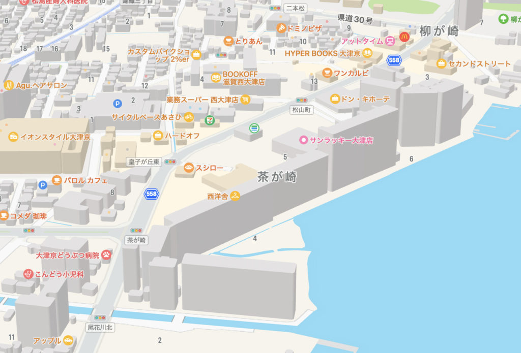 理由としては琵琶湖沿いは駅から遠く、集合住宅の需要がないというところです。駅と琵琶湖が近くて栄えてるのはほんの僅かなんですね。