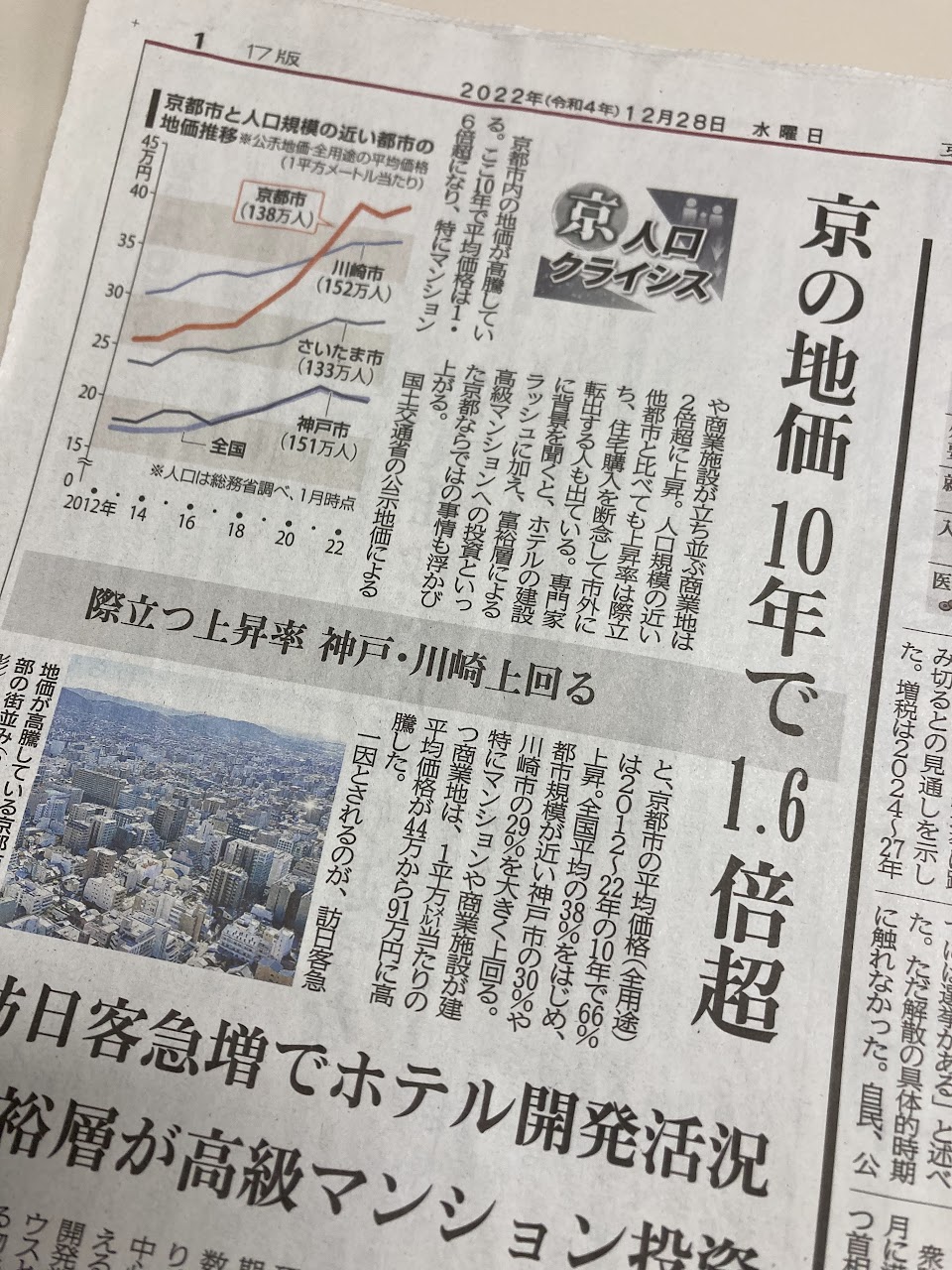 京都新聞2022.12.28 (森静香)京の地価 10年で1.6倍超