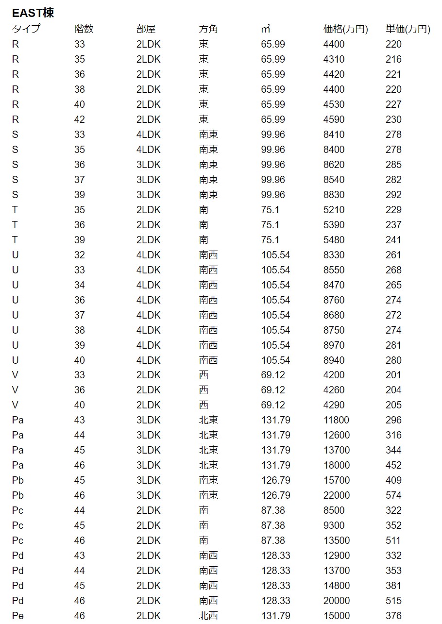 もちろん、今の相場で考えてEAST棟も買いやすい価格ではあるものの、条件が悪くなっているかつ値上げされている、となると心理的には少し買いづらい部分があるかもしれません。
